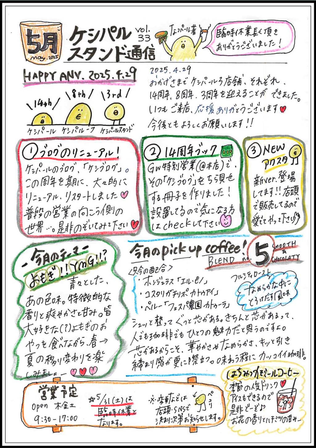 慌てて、遠い昔の5月のスタンド営業の黒板をアップします♪