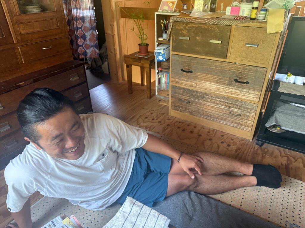 「どんだけ寛ぐねん!前にお邪魔した時は、部屋でうんちしてたし!(当時1歳おむつ太郎)」