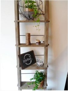 一緒に持って帰ったシャビーなはしごも飾りました。