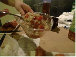 トマトとタマネギの食べるソース。