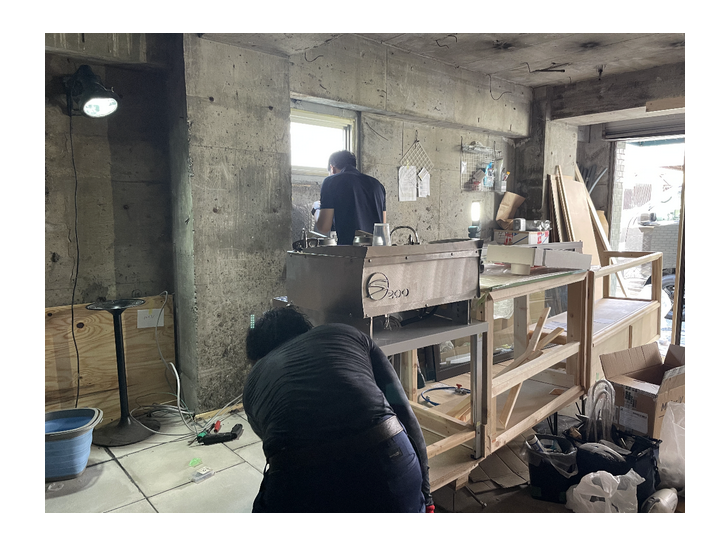 ↑エスプレッソマシンなどの設置作業。映えすぎです、かっこいいです。